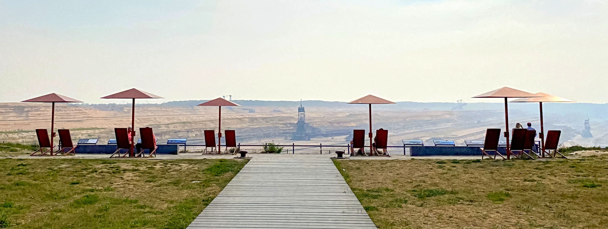 Tot zover het oog reikt is nog slechts woesternij te zien. En waarom ben ik niet verrast als ik lees dat de gigantische bruinkoolgroeve inmiddels is uitgegroeid tot een toeristische attractie, compleet met uitzichtpunten, waar je onder een parasolletje de graafwerkzaamheden kunt volgen.