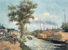 Gezicht op Oude Pekela met zijn veenkoloniale strokarton-industrieën.
