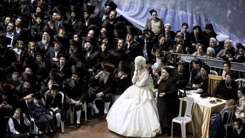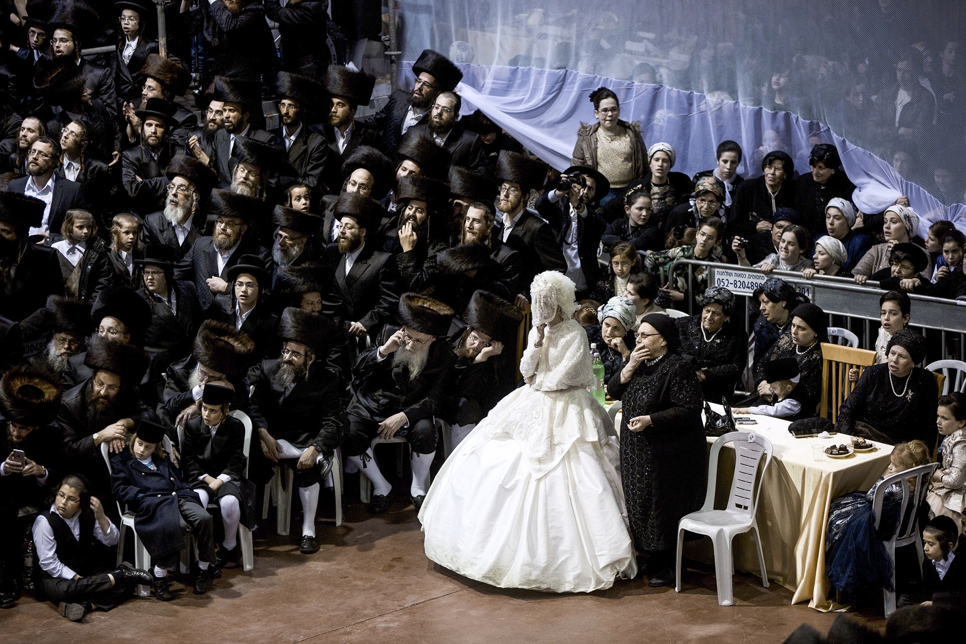 Een tafereel in Israƫl deze week. Een orthodoxe joodse bruid kijkt toe bij de traditionele Mitzvah tantz op haar bruiloft in Netanja. Het chassidische jodendom is ontstaan in de achttiende eeuw in Oost-Europa en heeft zich verspreid over de wereld, met vooral volgelingen in de Verenigde Staten. Het huwelijk trok duizenden gasten en de persfotograaf Odet Balilty was erbij en maakte de foto van zijn leven. Hij is in alle facetten als een schilderij zo mooi.