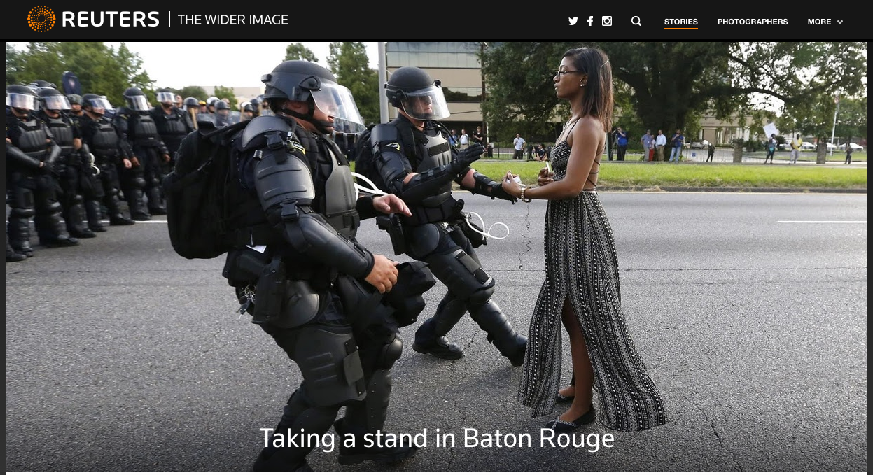 In de Verenigde Staten gaan de protesten tegen politiegeweld door. Honderden betogers gaan de straat op om te strijden voor gelijkwaardige rechten voor zwarte burgers. In Baton Rouge maakte Reuters fotograaf een iconische foto, die veel losmaakt op social media. Een zwarte vrouw staat onbeschermd en fier middenop de weg, terwijl volledig uitgeruste politieagenten op haar afstormen blijft zij onverstoorbaar en standvastig staan. Dat beeld gaat inmiddels de hele wereld over en er wordt flink op gereageerd. Zoals door Jami West: