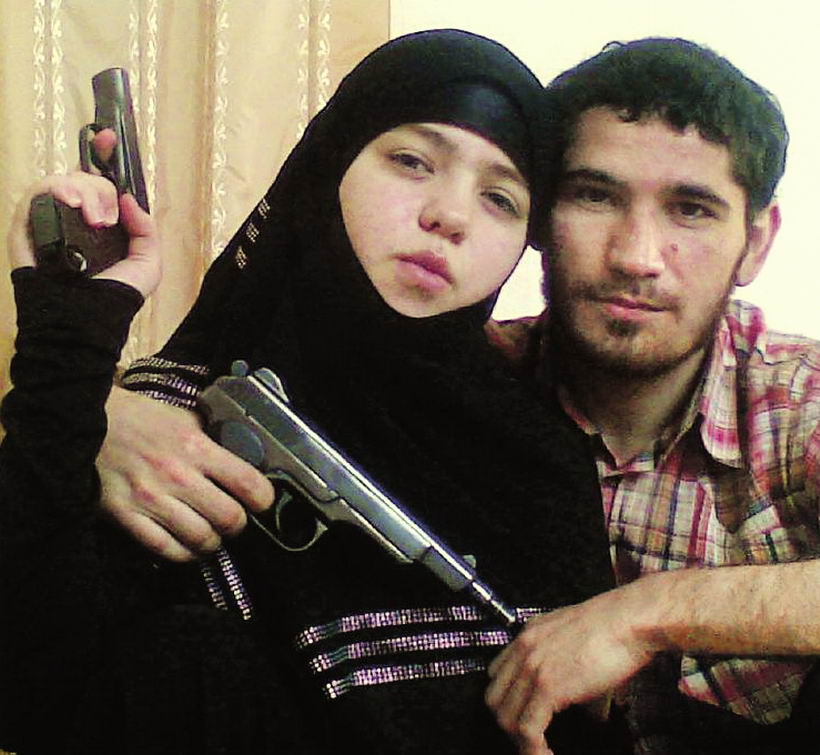 In de Russische pers is een foto opgedoken waarop de twee tortelduifjes uitdagend met vuurwapens in de hand voor de camera poseren.