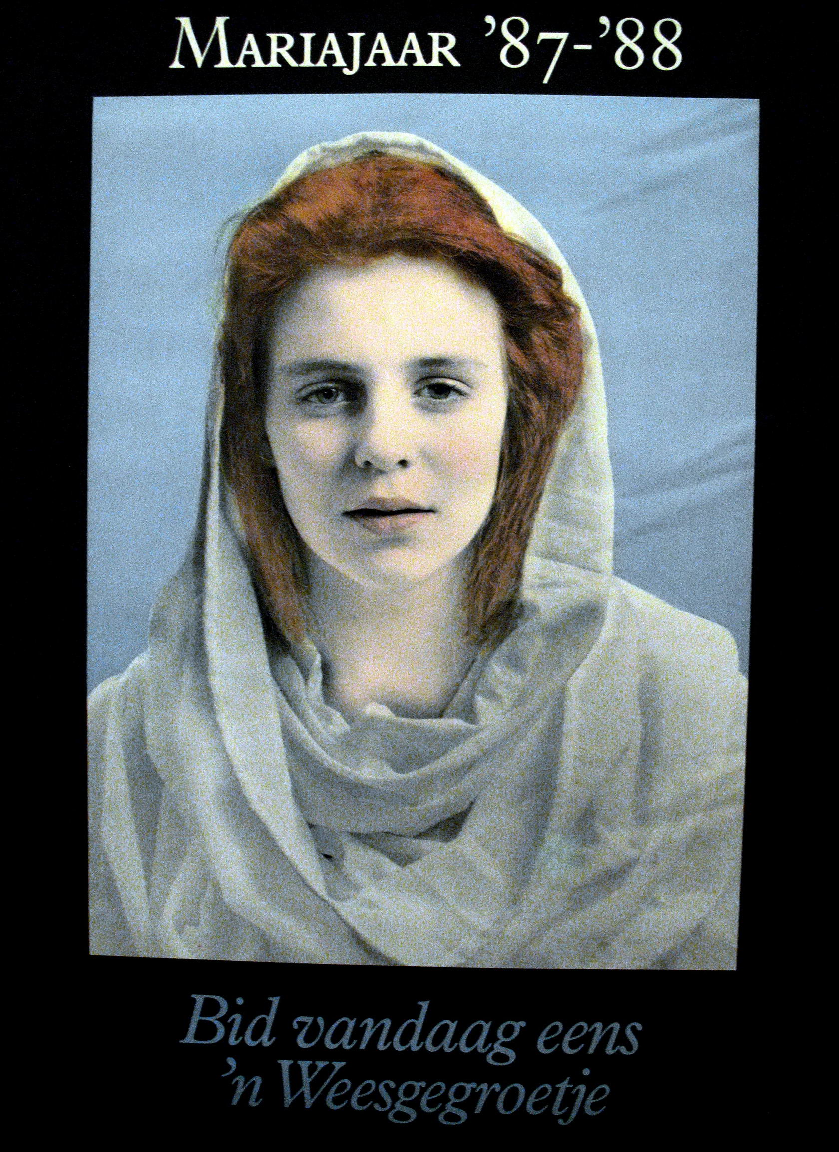 De poster maakte deel uit van een promotiecampagne van het bisdom. Het motto was “Bid vandaag eens ’n weesgegroetje“.