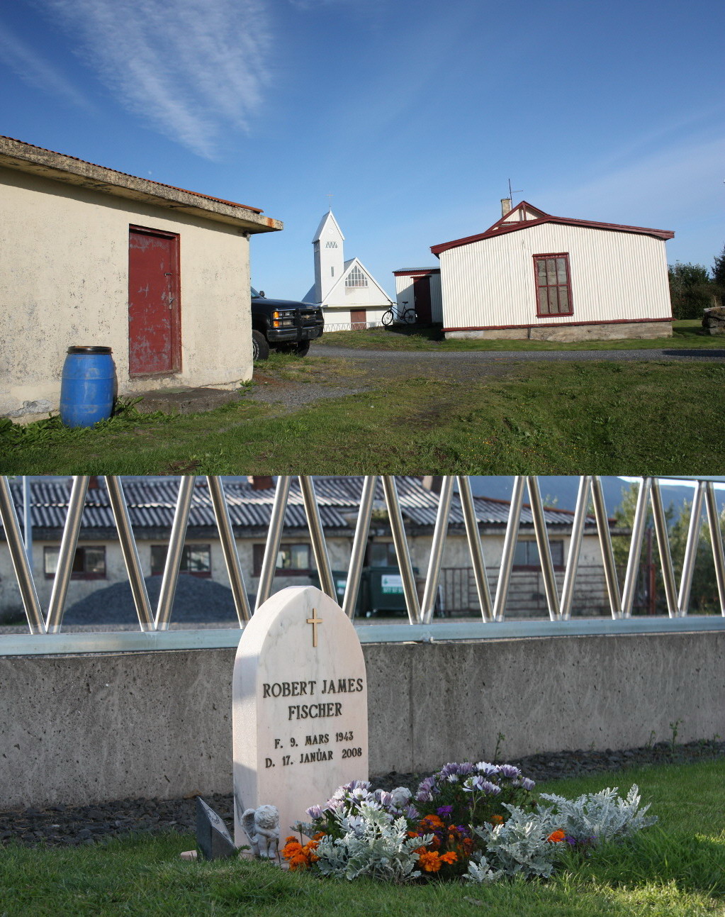 Het hek dat toegang geeft tot de plaatselijke begraafplaats zit gelukkig niet op slot. Lang hoef ik niet te zoeken naar de laatste rustplaats van Robert James (Bobby) Fischer, korte tijd briljant schaker.