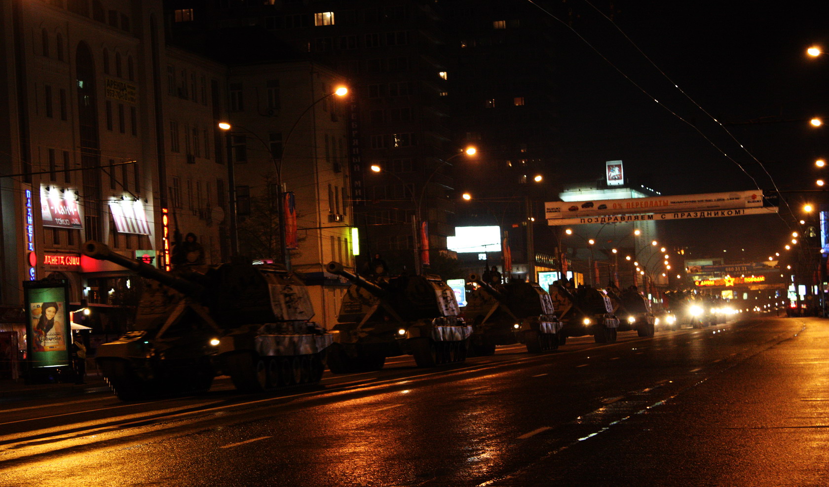 Het zit gelukkig anders. Deze week wordt volop geoefend voor Victory Day. Op 9 Mei hielden de Duitsers het qua WO II voor gezien en daar kijkt men in de voormalige Sovjet Unie met plezier op terug. En dus is het zaterdag feest in de straten van Moskou. De voorbereidingen zijn in volle gang.