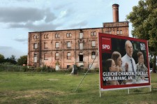 Neem nou de SPD, zeg maar de Duitse Partij van de Arbeid. In Prenzlau gaan de sociaal-democraten “für gute und sichere arbeit” en zoals hier in Angermünde voor gelijke kansen voor iedereen. Wie wil dat nou niet? Stemmen!