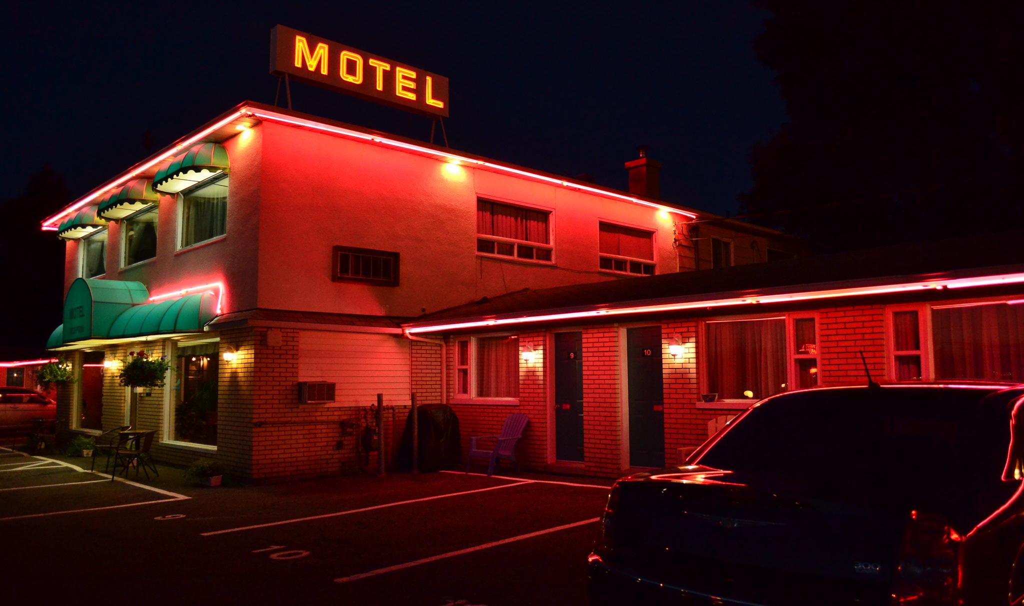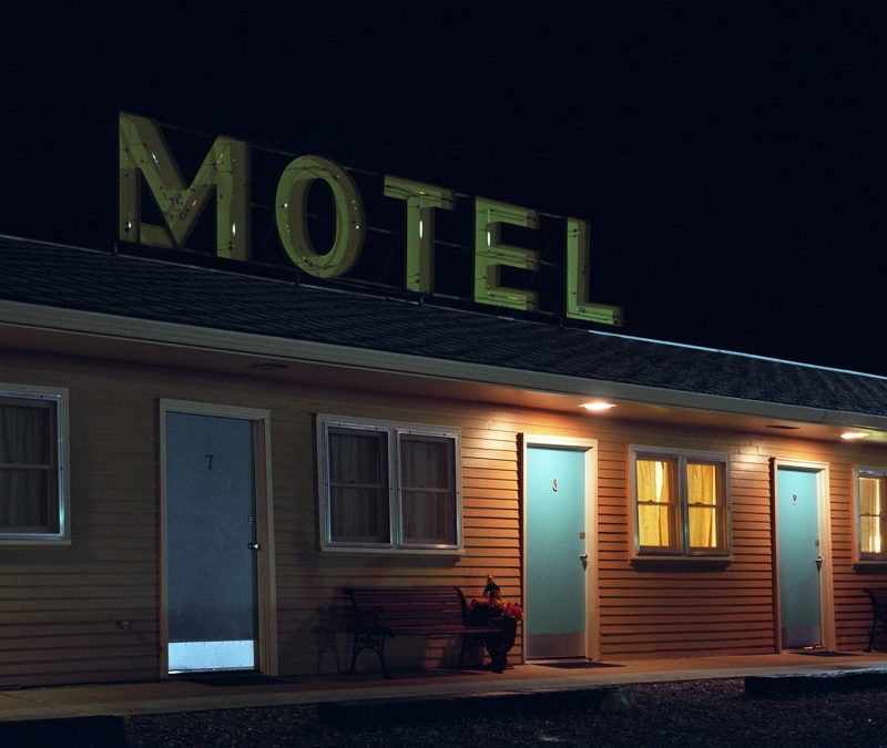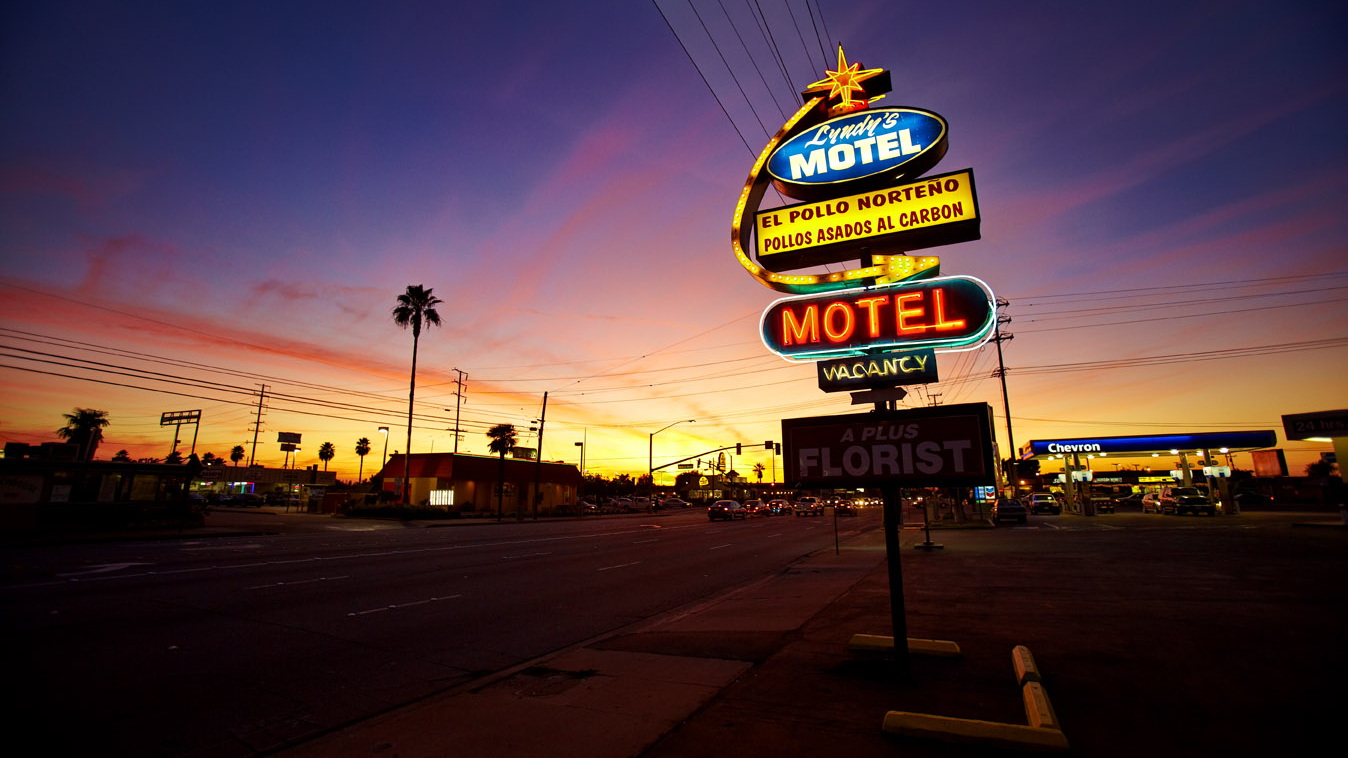 En dan aan het eind van de dag op zoek naar een goedkoop motel.