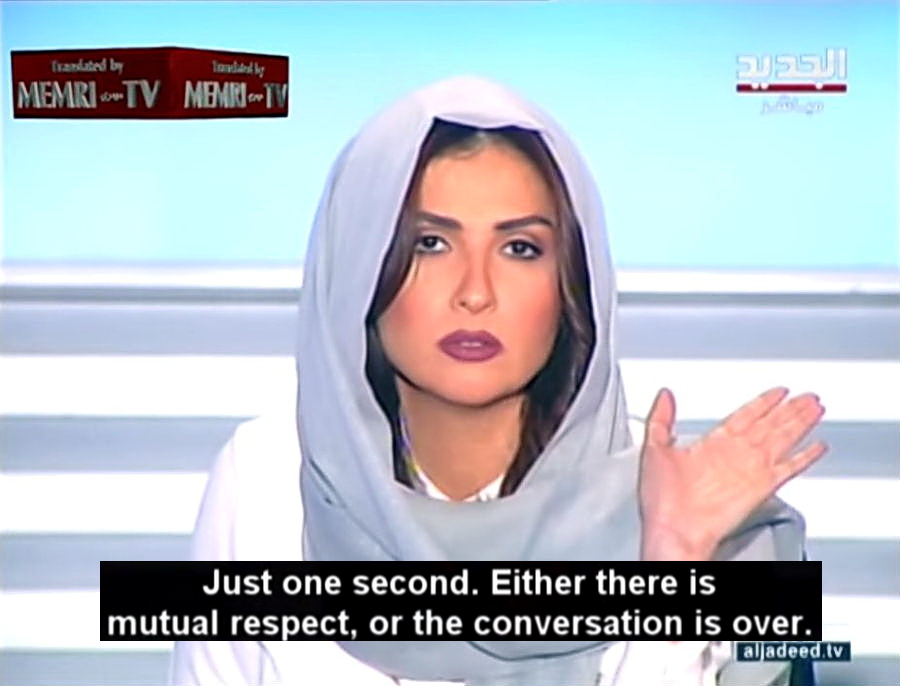 Rima Karaki wordt op het internet bejubeld nadat ze op 4 maart jl. een live interview onderbrak. De De Libanese tv-presentatrice kreeg van een Islamitische geestelijke te horen dat ze haar mond moest houden.