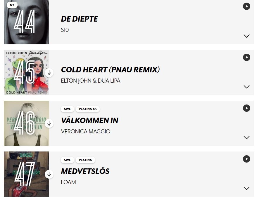 De Zweden herkennen ‘De Diepte’ zonder de verklarende woorden van Stien den Hollander. Daarom denderde het nummer kort na het Songfestival binnen op een 44ste plaats in de ‘Sverigetopplistan‘, de lijst van honderd best verkochte en meest gedraaide nummer van het land.